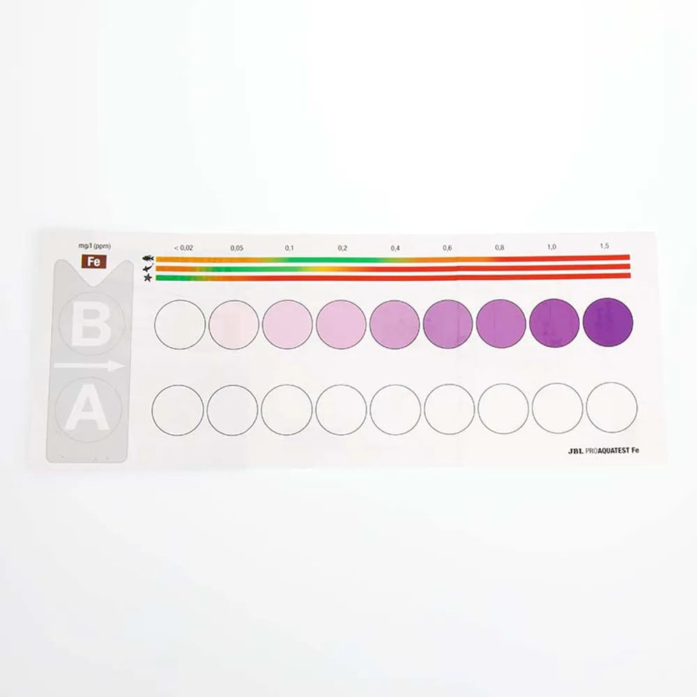 - Jämför färgen med färgskalan och avläs järnnivån.