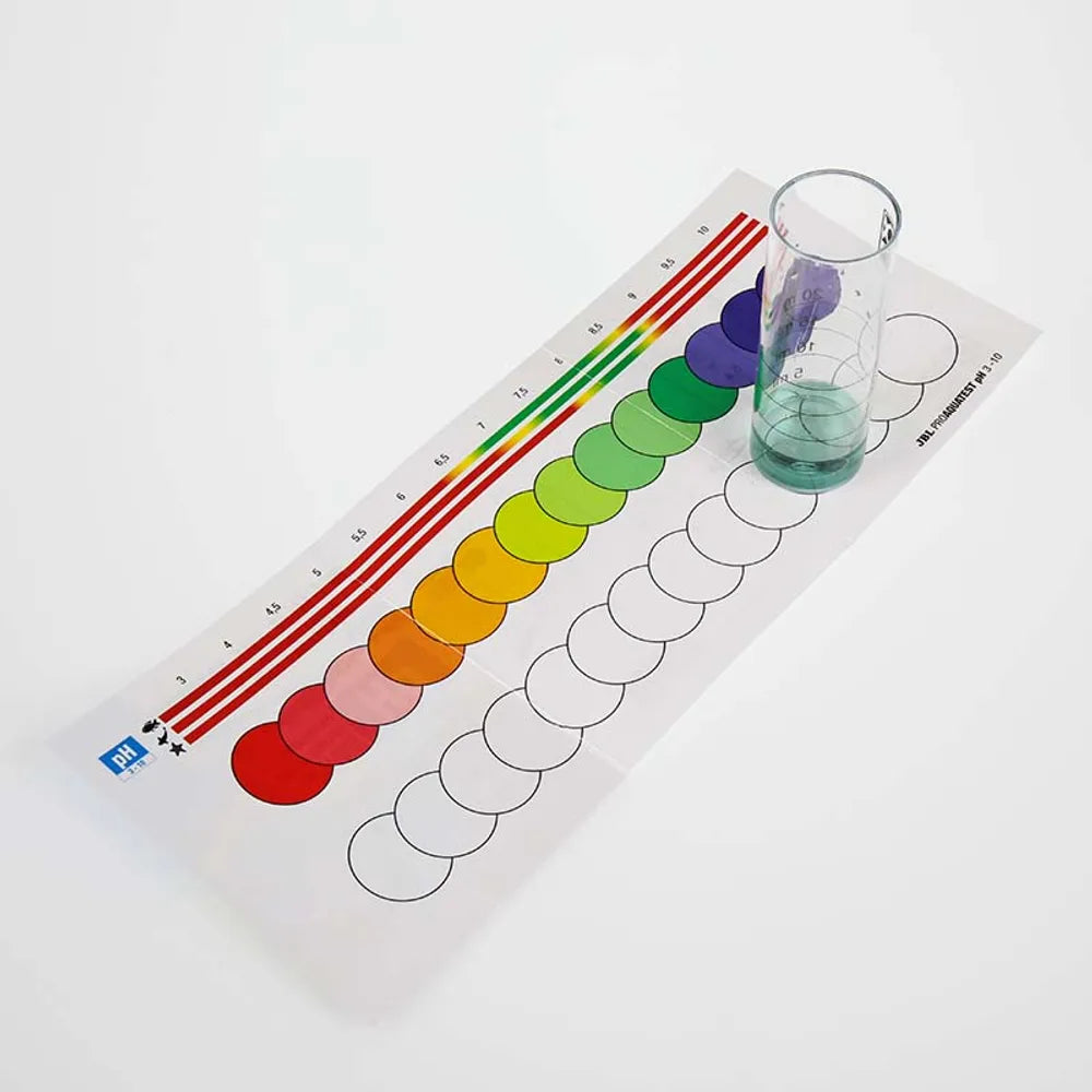 JBL ProAquaTest pH 3.0–10.0 gör det lätt att få en tydlig överblick av akvariets pH-värden. Genom att kombinera provvatten och reagens i den medföljande kyvetten kan du snabbt jämföra resultatet med färgskalan.