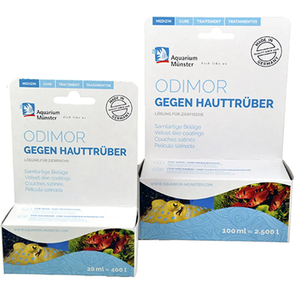 Münster Odimor är en effektiv behandling mot protozoer, särskilt oodinium (sammetssjuka), och skyddar samtidigt mot sekundära bakteriella infektioner.